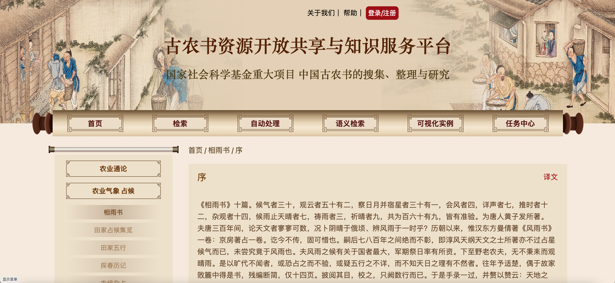 “齐民”是首个专注于古农文领域应用的大语言模型,在通用模型GLM-4-9B的基础上,通过收集和处理农业古籍的全文语料,从农业古籍中汲取智慧,深入挖掘古代农业技术、农耕经验和社会生态知识,支持农业知识的问答、文本自动处理、语义检索等下游应用。“齐民”大语言模型具备强大的自然语言处理能力,可为古代农业种植、畜禽养殖、农田水利、气象占侯等农事各方面问题提供精准解答。基于该大模型的文本自动处理、语义检索等工具,能为农业古籍研究学者开展古代社会和农业研究提供高效分析支撑。