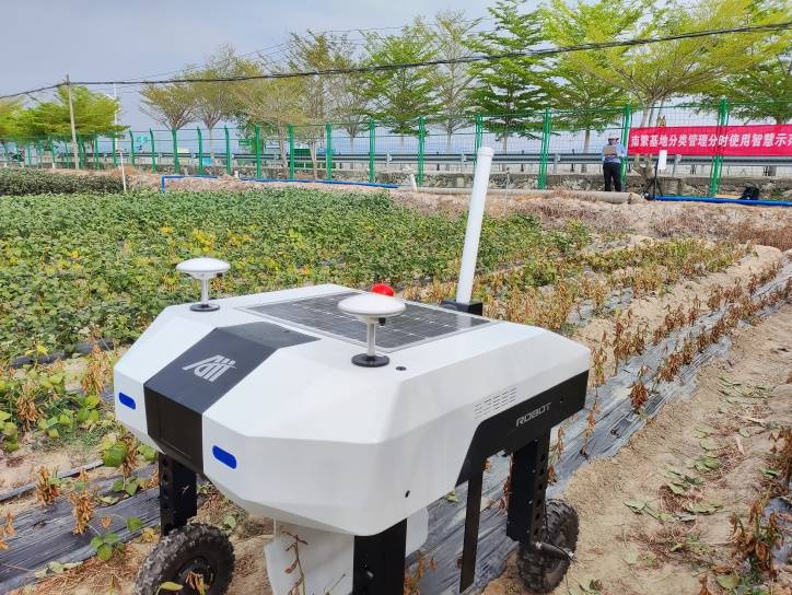 田间智能巡检机器人能够对田间大豆的豆株、豆荚以及豆粒等相关表型信息进行智能感知与分析,实现了田间作物表型监测的自动化。其应用机器视觉算法和嵌入式开发技术,具备在田间沿垄沟自主导航、自动换垄行进、远程通讯等功能,极大地节约了田间监测的人力成本。机器人内置配套的作物田间表型智能分析系统,利用人工智能技术对田间大豆的连续视频流进行处理,系统包含运行在机器人端与控制端的两个子系统,能够实现远程通讯和控制,极大地方便了系统的部署和使用。