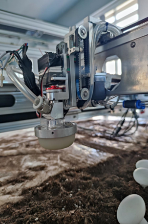 针对工厂化种植的高附加值菌类采摘难题,研发了集移动底盘、采摘机械臂、双目视觉检测、智能采摘工具为一体的机器人本体运行系统,同时配置工厂化流程作业的随动收集装置和机器人本体自动上下架装置,实现成熟菌类的无损、高效、全天候采摘,满足了菇房床载式种植场景应用需求。