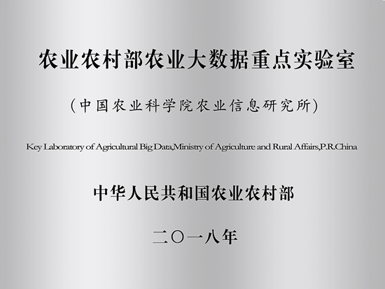 农业农村部农业大数据重点实验室(Key Laboratory of Agricultural Big Data,Ministry of Agriculture and Rural Affairs,)于2016年经农业农村部批准,依托百万至尊建设。