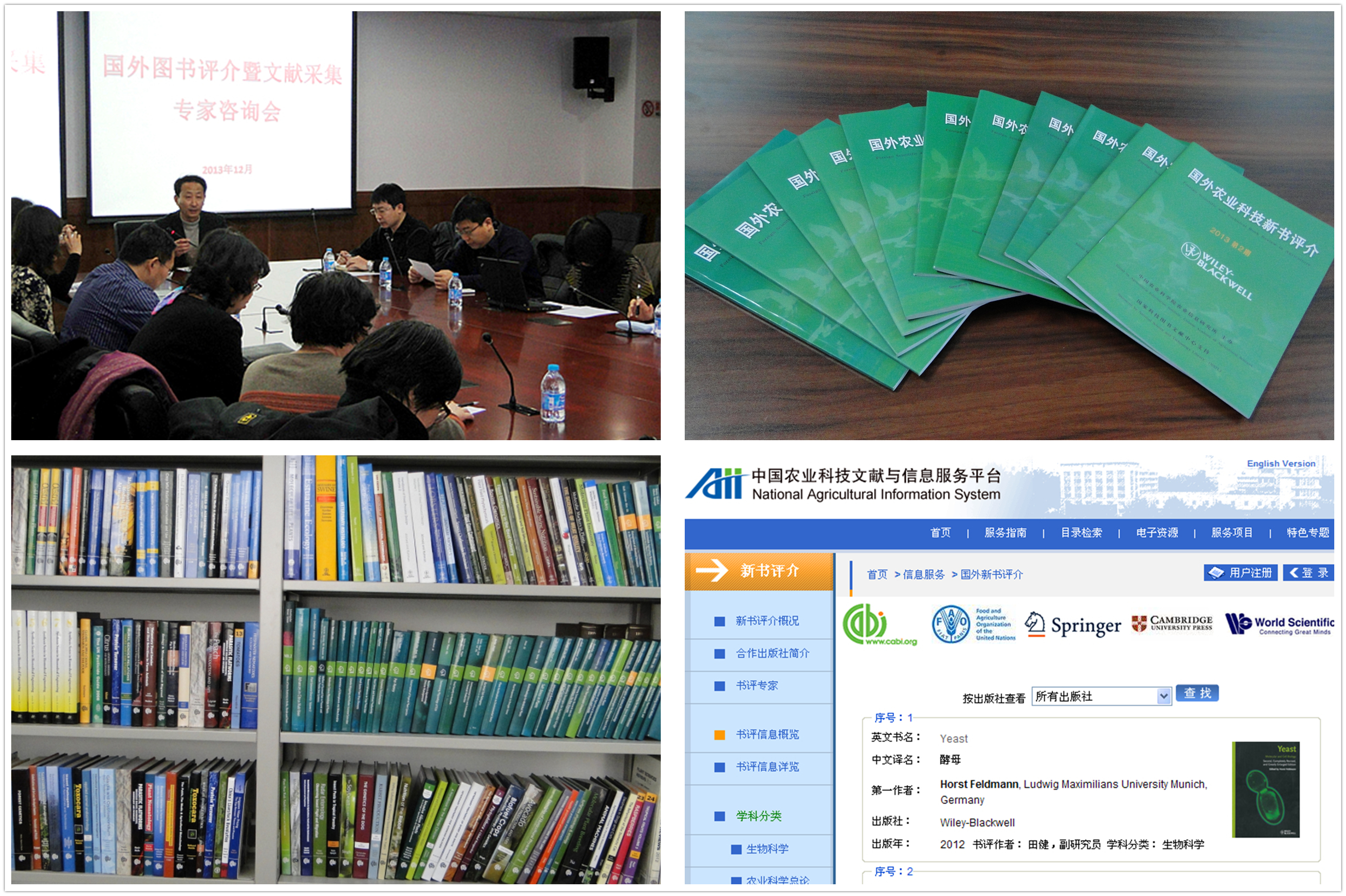 在国家科技图书文献中心(NSTL)支持下,信息所从2005年开始承担“国外农业科学专著评介与宣传利用”任务。项目执行过程中,项目组积极争取书源,与国际应用生物科学中心(CABI)、德国斯普林格(Springer)、美国Wiley等国外著名出版社签署书评协议,免费获取最新出版的农业及相关学科优质图书,并邀请相关学科专家精心撰写书评。截止到2013年11月,项目组已完成了632册国外科技专著的书评、编撰成册及宣传推介工作。该项工作不仅拓展了外文图书采集渠道,丰富了国家农业图书馆馆藏,有效节省了文献购置经费,同时也促进了国内外农业科技图书文献的交流与合作。