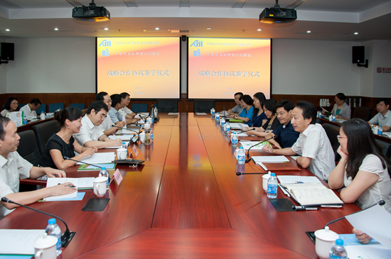 刘继芳分别代表双方在协议上签字。院办公室副主任姜梅林、宣传处处长沈银书出席。会议由信息所副所长孟宪学主持。