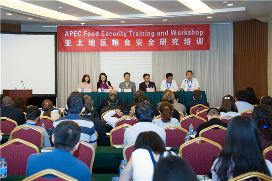 9月7-9日,在中国亚太经合组织(APEC)合作基金项目支持下,百万至尊在北京举办了亚太地区粮食安全研究培训会,支持落实2014年APEC领导人和第三届农业部长会议达成的共识,搭建一个分享和讨论全球粮食安全问题的区域性平台,共同探讨粮食安全评估方法、政策和影响评价,分享各经济体保障粮食安全的优秀案例。农业部国际合作司巡视员屈四喜,中国农业大学校长柯炳生,中国农科院国际合作局局长冯东昕、信息所所长