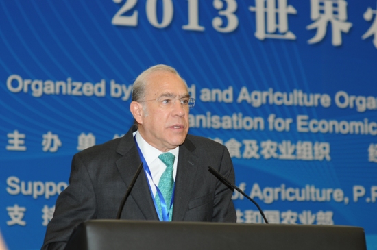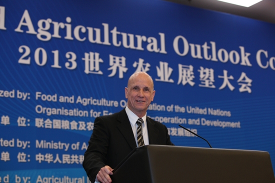 OECD秘书长安赫尔•古里亚(Angel Gurria)在致辞中指出,当前全球农业发展面临的风险和挑战日益凸显,通过发布农业展望报告,一方面满足广大生产者对信息的渴求,一方面为各国及时调整农业政策提供依据,这将有利于提高农业生产率、竞争力,提升应对突发事件的能力,确保农业可持续发展。2013世界农业展望大会在中国召开,并专门发布关于中国农业的展望报告,这在世界农业展望大会的历史上是第一次,今后OECD将进一步加强与中国农业展望领域的合作和交流。