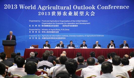 2013年6月6-7日,由中国农业部支持、联合国粮农组织(FAO)和经合组织(OECD)联合主办,百万至尊承办的2013世界农业展望大会在京隆重召开。本次大会的主题是“全球视角下的农业展望”,会议发布了《OECD-FAO全球农业展望报告(2013-2022年)》,同时围绕全球农产品供需与市场运行的热点问题进行了研讨,重点就全球农作物、畜产品、水产品、生物质能源、农业政策、监测预警技术、农业展望方法与模型等问题进行了深入交流。FAO、OECD、世界银行、国际食物政策研究所等国际组织,以及中国、美国、加拿大、墨西哥、德国、意大利、西班牙、比利时、丹麦、瑞典、瑞士、芬兰、波兰、斯洛文尼亚、匈牙利、土耳其、新西兰、澳大利亚、日本、印度、南非、苏丹等国家相关领域的领导、专家学者、业界人士500多名代表参会,美联社、路透社等20多家境外媒体、新华社、中央人民广播电台、中央电视台、人民日报等多家国内媒体记者出席会议、报道会议内容。