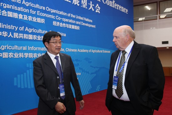 中国农业部副部长陈晓华在大会开幕式致辞中指出,中国作为发展中的人口大国,始终高度重视国家粮食与食物安全,坚持立足国内实现粮食基本自给,坚持不懈地提高粮食和农业综合生产能力,为世界粮食安全做出了重大贡献。近年来国际农产品市场价格波动日趋剧烈,迫切需要各个国家尤其是农业生产和消费大国之间,以及有关国际机构之间,加强农业信息的共享和交流,推动农业政策的协调与共识。农业部高度重视农业监测预警和展望工作,逐步建立了中国重要农产品市场监测预警系统,从信息采集、分析、发布等各个方面加强工作,对粮棉油糖等主要农产品国内外市场供求及价格走势进行全方位跟踪、分析和展望。农业部将以这次“世界农业展望大会”为契机,进一步加强农业展望方面的国际交流,不断提升分析预警能力,完善市场调控,促进国内农业生产发展和农产品市场稳定,为国际食物安全保障持续做出贡献。