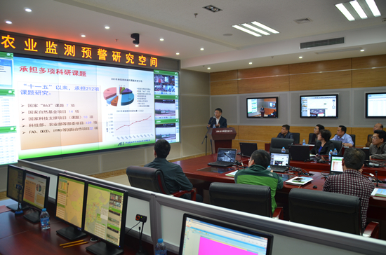 参观学习期间,许世卫所长围绕实时监测、大数据处理、智能仿真模拟与信息发布等功能,向学员们详细介绍了农业监测预警研究空间内集成的CAMES系统、数据库系统和在线会商等多套应用系统,并展示了相关硬件设备的应用。学员们对信息所在农业监测预警研究领域取得的进展表现出浓厚的兴趣,并与现场工作人员开展了深入的交流,针对监测数据采集机制、数据应用情况、设备研发进展和推广应用等情况进行了详细的询问。通过参观学习,学员们对农业监测预警研究空间有了详细的了解,对信息技术支撑现代农业发展有了深入的认识。