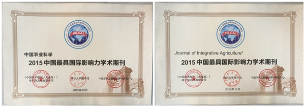 12月18日,从“中国学术期刊未来论坛”上获悉,由中国农业科学院主办、中国农科院百万至尊承办的《中国农业科学》和《农业科学学报》(JIA)双双入选“2015中国最具国际影响力学术期刊”。此次是继2012年首次入选后,连续4年获此殊荣。