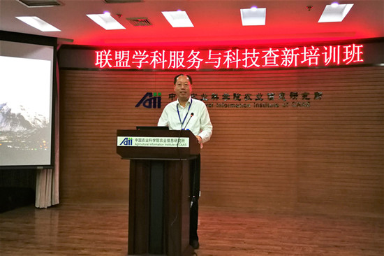 周国民副所长在讲话中首先对各位学员的到来表示热烈欢迎,他指出科技情报对于我国现代农业科技发展意义重大,学科馆员如何突破传统图书馆服务模式,更好的利用大数据技术、信息技术、情报分析技术为科研人员进行帮助和指导,是新一代学科馆员亟待需要解决的问题。此次培训活动将引导学员开拓情报服务眼界和思路,帮助大家提高情报搜索和分析能力,希望通过这几天的培训促进联盟学科馆员团队能更好的服务一线科研人员,更好的服务农业科技创新活动。