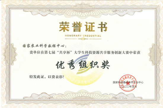 “共享杯”大学生科技资源共享服务创新大赛(以下简称“共享杯”大赛)是经科技部批准、面向全国在校本科生、研究生的科技资源共享创新实践活动。“共享杯”大赛围绕国家创新驱动发展战略要求,旨在通过大赛方式打通科技创新与经济社会发展的通道,培养在校大学生、研究生利用科技资源进行创新创业的能力,成为考核科技资源共享服务能力及水平的“试金石”。第七届“共享杯”大赛主办单位国家科技基础条件平台中心、承办单位国家科技资源共享服务工程技术研究中心,于2019年5月启动,共吸引来自全国近3000个学生团队报名参赛,提交有效参赛作品2245件。国家农业科学数据中心协助本次赛事进行了赛题准备,数据资源支持,动员相关院校学生积极参赛。国家农业科学数据中心获得了第七届“共享杯”大赛优秀组织奖、国家农业科学数据中心樊景超获得了第七届“共享杯”大赛突出贡献奖。