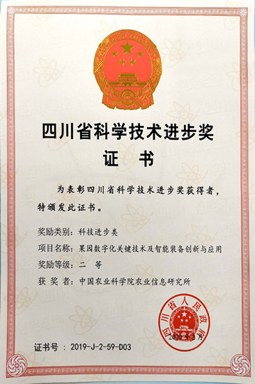4月21日,在成都举行了四川省科学技术奖励大会,表彰科技创新和经济社会发展作出突出贡献的科技工作者。科学数据中心参与申报的项目《果园数字化关键技术及智能装备创新与应用》(编号:19CGZH0101),获得2019 年度四川省科学技术进步奖科技进步类二等奖。