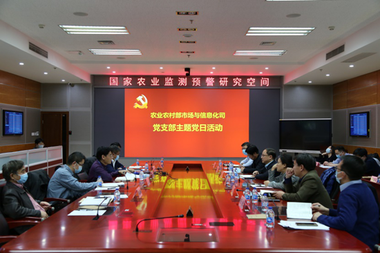 唐珂指出,此次主题党日活动是深入学习习近平新时代中国特色社会主义思想,用新思想武装头脑指导实践推动工作,将党建工作与农业监测预警工作相融合的一种创新,是在部党组提出“十四五”工作定位“保供固安全,振兴畅循环”部署下开展的。加强农业监测预警,用信息引导和促进农产品供需平衡和市场形势稳定,及时发现并防范农产品供需风险,是农产品保供固安全的重要举措,也是聚焦“国之大者”的重要体现。信息所农业监测预警团队在监测预警领域开展了长期研究和创新,取得了重要成效,为农产品监测预警工作作出了重要贡献。下一步,市场司将进一步加强对农业监测预警工作的指导和支持,支持信息所成立农业监测预警工作专班,创新定期会商机制,将农业监测预警工作作为重点任务推进。同时要加强司、所资源的组合利用,发挥各自优势,树立更高目标,共同推进科学、权威、高效监测预警体系的建立,服务于领导决策与社会需求。