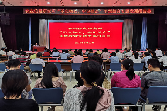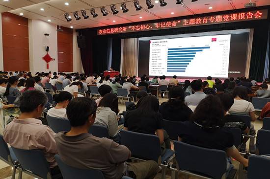 8月20日,信息所开展“不忘初心、牢记使命”主题教育专题党课报告会,党委书记刘继芳作《中国特色社会主义是实现初心的根本保证》党课报告,所长孙坦作《“不忘初心、牢记使命”为我国农业现代化根本性变革做出划时代贡献》党课报告,会议由党委副书记张蕙杰主持。