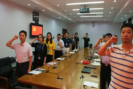 为深入贯彻党的十九大精神,引导党员“不忘初心、牢记使命”,第四支部于7月19日组织召开“不忘初心,重温入党志愿书”主题党日活动。支部书记孔繁涛同志带领大家重温入党誓词,支部委员刘海龙同志分享6月29日至7月2日第四支部赴贵州重走长征路的活动收获,每一位党员对照自己当年的入党志愿书,回忆入党故事,联系个人学习和工作实际,深入剖析了入党初心,审视入党以来个人思想政治发展脉络,其中新加入的支部的党员王聃、程国栋同志也重温了入党志愿书。最后, 合唱国际歌,活动圆满结束。