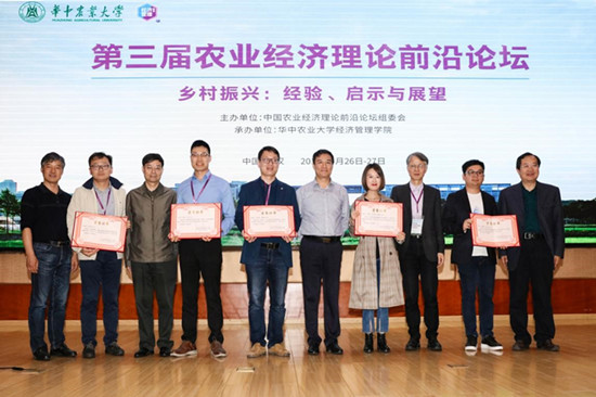 4月27日,由“中国农业经济理论前沿论坛”组委会主办的第三届“农业经济理论前沿论坛”在华中农业大学举行,论坛以“乡村振兴:经验、启示与展望”为主题开展了深入交流和讨论。自北京大学、中国人民大学、浙江大学、上海财经大学、中国农业大学、中国农业科学院、农业农村部农村经济研究中心等国内高校和科研机构共100多位专家学者,参加了“反贫困与农民收入”、“农业与农村发展”、“农业要素及其配置”、“农地与农业经营制度”和“农业资源与环境”等五个分会场的研讨,50多位学者围绕农业与农村实际、紧扣国家战略需求、结合经济学国际前沿等相关主题进行了专题汇报。