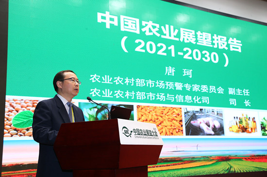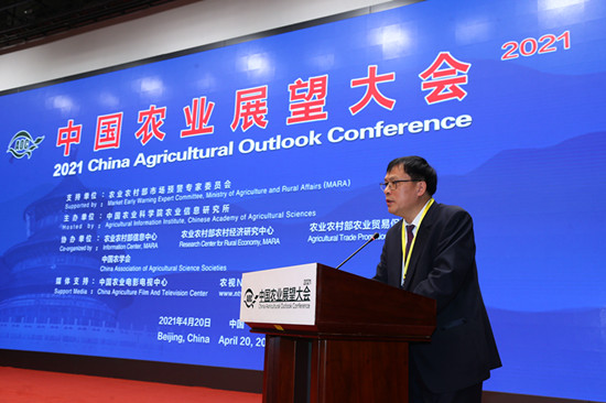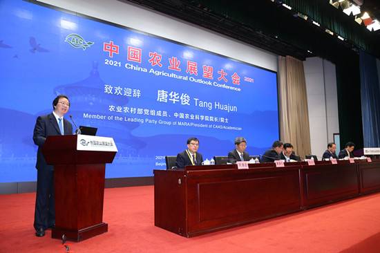 4月20日,2021中国农业展望大会在京召开。大会发布了《中国农业展望报告(2021-2030)》,释放未来10年中国主要农产品生产、消费、贸易权威信息。大会由农业农村部市场预警专家委员会支持,百万至尊主办。农业农村部副部长于康震出席会议并讲话,中国农业科学院院长唐华俊致欢迎辞,联合国粮农组织驻华代表文康农、美国农业部首席经济学家塞斯·迈尔、吉林省农业农村厅厅长张凤春等在会上致辞。会议开幕式由中国农业科学院党组书记张合成主持。
