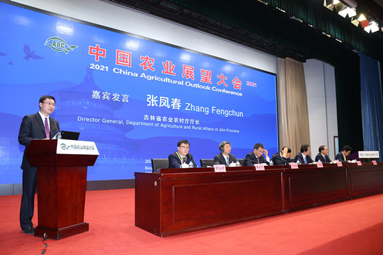 吉林省农业农村厅厅长张凤春在致辞中介绍了粮食大省吉林省夯基础、稳面积、攻单产、提产能,“十四五”时期粮食产量稳步迈上800亿斤新台阶的对策和措施。