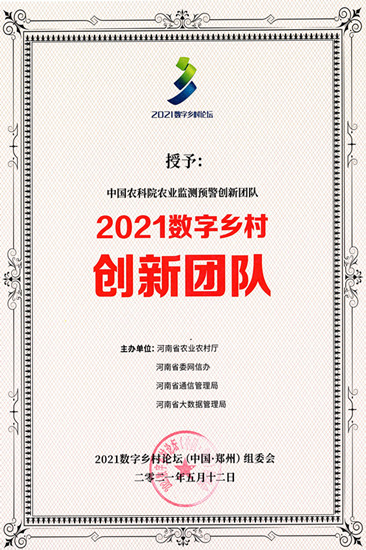 监测预警团队被“2021数字乡村论坛”评为数字乡村创新团队