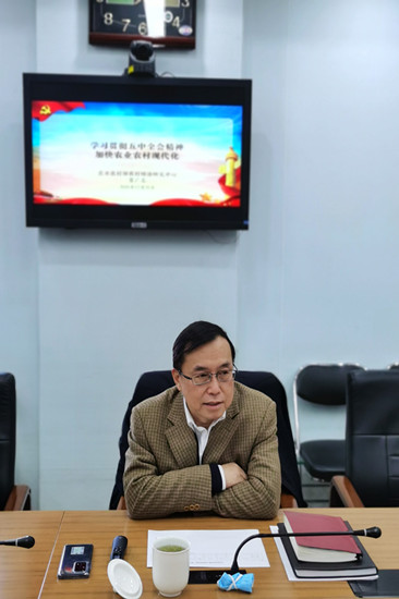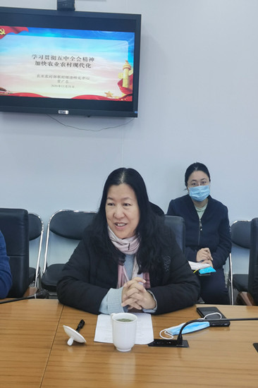 为加强党员干部政治理论水平,增强“四个意识”、坚定“四个自信”、做到“两个维护”,12月31日,信息所第一党支部、第八党支部组织开展学习贯彻党的十九届五中全会和中央农村工作会议精神主题党课活动,邀请农业农村部农村经济研究中心党组书记贾广东同志上了题为“学习贯彻五中全会精神、加快农业农村现代化”的专题党课。信息所副所长聂凤英同志主持会议,第一党支部、第八党支部党员以及部分群众参加学习。