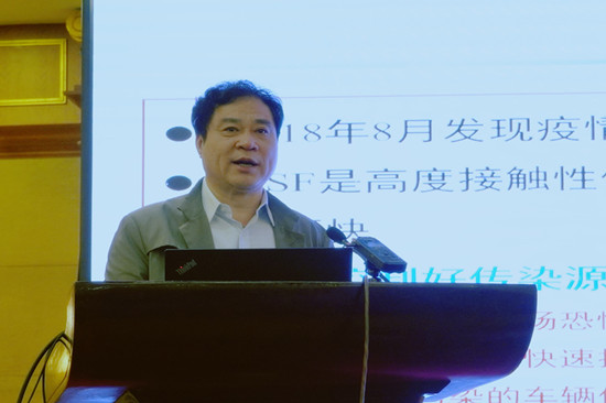 中国工程院院士、河南农业大学校长张改平作《非洲猪瘟疫苗研究现状与展望》的报告
