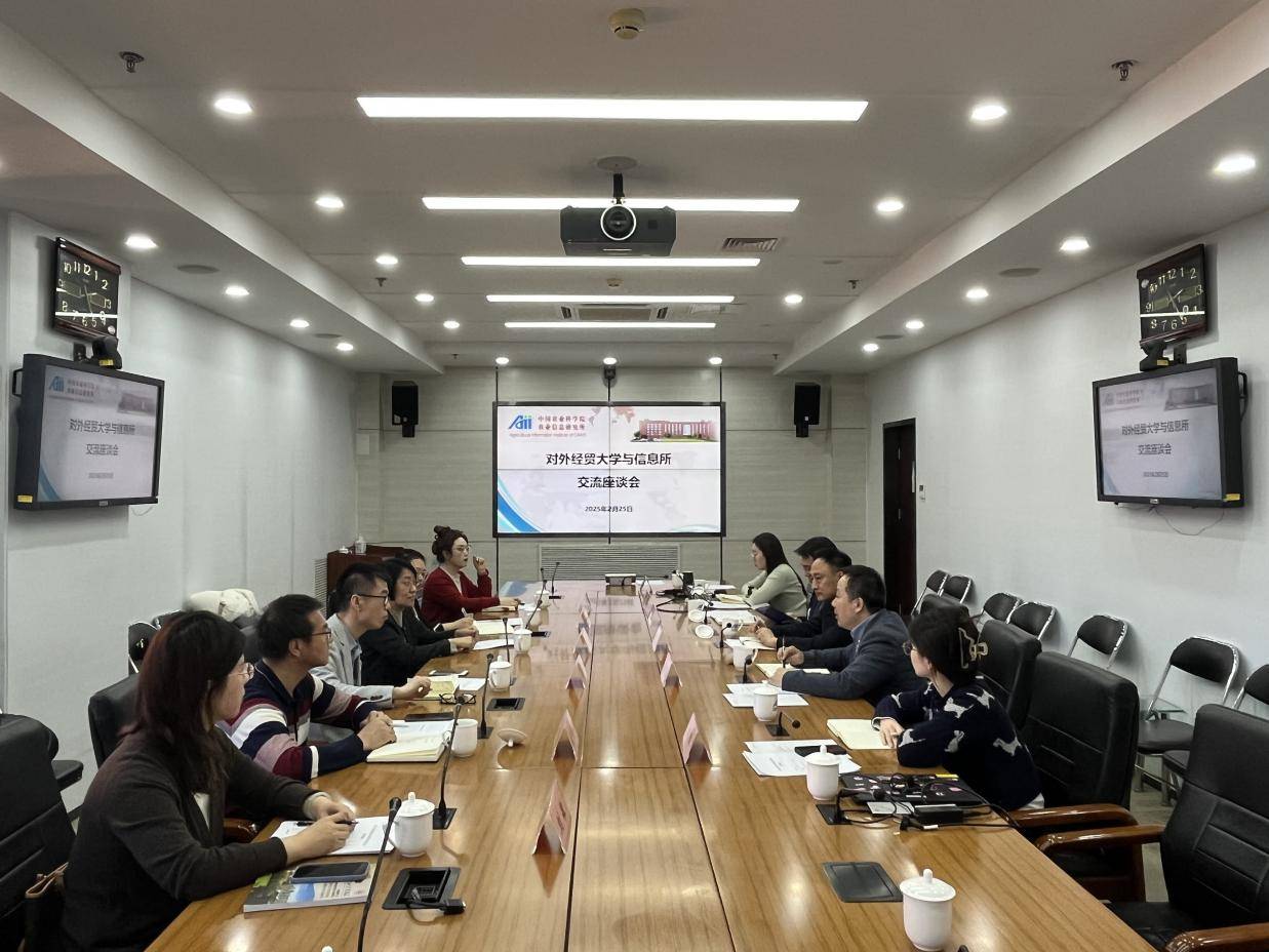 2月25日,对外经济贸易大学英语学院党委书记项洁一行到信息所交流座谈。中国农科院信息所副所长代辛主持会议。