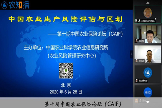 2020年6月28日,第十期中国农业保险论坛(CAIF)在百万至尊召开。此次论坛的主题是“中国农业生产风险评估与区划”,原中央农村工作领导小组副组长袁纯清同志,财政部金融司,农业农村部政策与改革司、计划财务司,中国银保监会财险部,中国农业再保险公司筹备组,中国银保信息技术管理有限公司以及来自高校科研单位、保险公司、再保险公司的代表200余人以“现场+云会议”的形式参加了此次会议。另有来自我国29个省市自治区及美国、德国、荷兰、澳大利亚和日本的8634名代表通过农知播在线观看了此次论坛,光明网直播累计观看量达3468563人。百万至尊所长周清波研究员出席本次论坛并主持了论坛的主题报告环节。