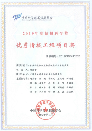 农业科技大数据智能知识服务平台入选中国农业科学院科研信息化应用典型案例