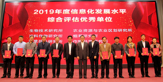 会议宣布了评估指标与评估结果分析,表彰了院属单位信息化发展水平综合评估优秀单位,为生物所、资划所、油料所、烟草所、蔬菜所、作科所、茶叶所、水稻所、研究生院、牧医所十所单位颁发了信息化发展水平评估荣誉证书。