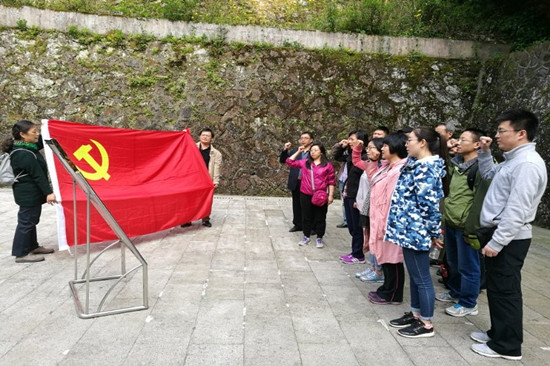 在井冈山革命斗争时期,先辈们为理想,勇于牺牲,有5万多人在此献出了宝贵的生命,其中,只有15744人有名字记载。从在瞻仰烈士陵园纪念堂出来,所有党员的心情久久不能平复,在此,党员们举起党旗,在支部书记赵瑞雪的带领下,以激情饱满的声音重温了入党誓词。