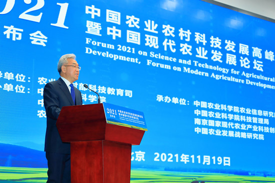 中国农业科学院院长、中国工程院院士吴孔明,中国农业科学院副院长梅旭荣、孙坦等发布了《2021中国农业科学重大进展》、《“十三五”农业农村科技发展报告》、《2021中国农业农村重大新技术新产品新装备》、《2021全球农业研究热点前沿》、《2021中国农业科技论文与专利全球竞争力分析》等专项研究报告,全面介绍了中国农业科研的发展态势和所取得的进展成果。其中《2021中国农业科学重大进展》、《2021全球农业研究热点前沿》和《2021中国农业科技论文与专利全球竞争力分析》3份报告由信息所科技情报研究中心研制。