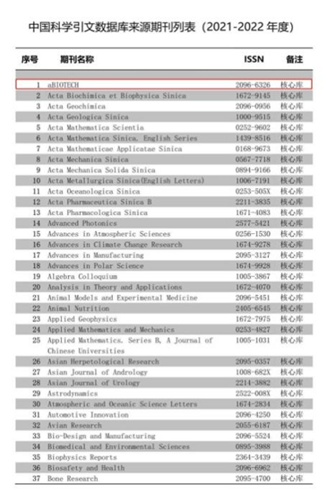 信息所主办英文刊《aBIOTECH》首次入选CSCD核心库