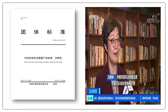 中国农垦乳业联盟主席冯艳秋在接受CCTV-2《正点财经》栏目组采访时表示,“新标准的制定会激励乳业企业和奶牛养殖场自觉地去进行技术改造,提升管理水平。通过新标准的发布,希望能引领和示范整个中国乳业全行业。农垦系统奶牛养殖具有悠久历史和深厚基础。制定和颁布国内最高、与国际标准接轨的团体标准,打造“中国农垦生鲜乳”品牌,推动本土企业生产好牛奶、好鲜奶,是农垦乳业的责任和使命。”
