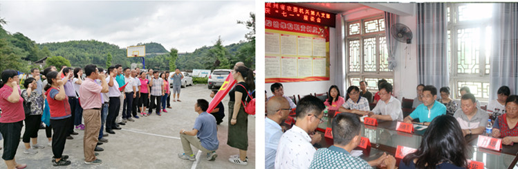 在黎平县高屯街道八舟社区居委会,由社区党支部书记领誓,全体党员重温入党誓词,之后召开展了庆“七一”座谈会。会上,贵州农委第八党支部介绍了贵州农业“一张图”和“农业云”的建设情况,八舟社区介绍了当地农业产业发展现状和绿色优质农产品难以“优价”的困惑,一起探讨了在农业信息技术和信息服务等方面,信息所与贵州当地开展合作的广泛空间。
