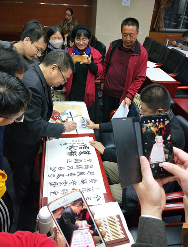 2018年11月2日下午,走进中国传统书画之门系列讲座“挥毫写桑麻,还来话田家——吴昌硕临石鼓文解析与体验”公益讲座在国家农业图书馆第五会议室成功举办,著名书画篆刻家洪亮先生作为主讲。前来参加此次活动的有北京各界书法爱好者,北京语言大学、北京传媒大学等首都高校的教授,部分北京九三学社成员,中国当代研究型书法家团队于嘉祥、李刚、傅先锋、苏刚、张波、彭庆阳、吴绍辉等,之外,还吸引了来自山东、安徽、浙江、江西、河南、河北等省的全国各地的书法爱好者专程赴京学习,共计60余人参加了讲座与体验活动。