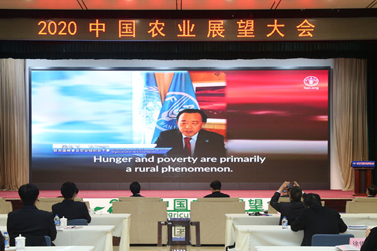 联合国粮农组织总干事屈冬玉2020中国农业展望大会视频致辞