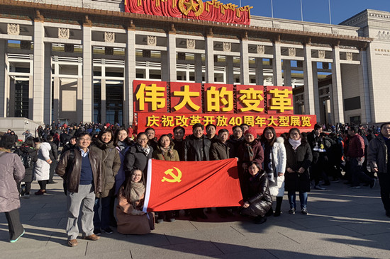 12月13日是国家公祭日,在这个特殊的日子里,参观“伟大的变革”大型展览,使支部的党员、入党积极分子和职工对伟大祖国的变革更加自豪、更加自信、更加骄傲,也认识到落后就要挨打,发展才能自强这个深刻的历史教训。通过参观,汇聚了爱国情感,受到了很大的鼓舞和教育,深刻认识到改革开放40年来的伟大成就,归功于党的正确领导。继芳书记希望大家化精神为行动,紧密地团结在以习近平同志为核心的党中央周围,坚持以习近平新时代中国特色社会主义思想为指导,按照习近平总书记“三个面向”指示精神,结合信息所党建“五个一工程”,加强党建工作与业务工作的融合,发挥党员的先锋模范作用,团结好群众,立足本职工作,争做中国农科院“红旗党支部”,在农业信息技术领域为我国的农业发展做出自己的贡献。