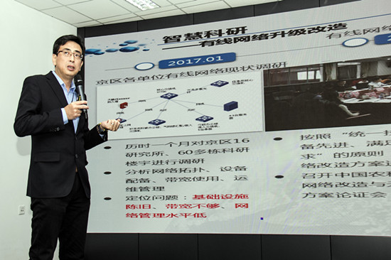 孙坦从智慧科研、智慧决策、数字农业三个层面展开,重点汇报了有线网络升级改造工作、智慧农科OA系统等工作进展,介绍了我所人才引进与机制创新工作,阐述了大数据高性能计算、海外农业研究中心大楼等基础设施建设工作,并提出夯实学科体系建设、加强前沿探索基础研究,打造高性能计算环境治理平台,实现创新突破的工作设想。