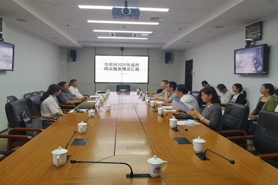 6月9日,院财务局陈金强局长到信息所调研座谈政府购买服务项目资金管理等事项。院财务局张士安副局长,预算处田小川副处长陪同调研,周清波所长到会。