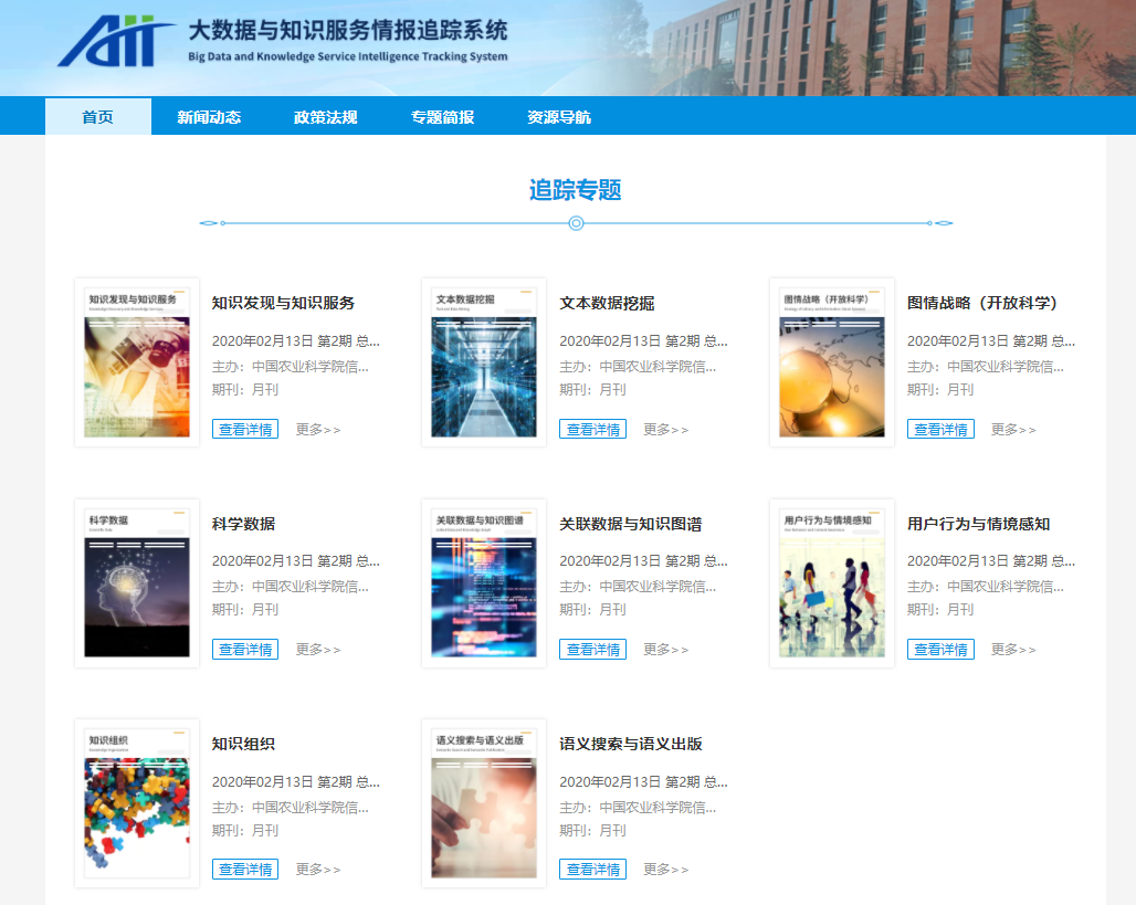 5.研究生开学延期,管理与指导不延期。在做好及时向研究生传达院所及研究生院工作安排精神的同时,指导老师赵瑞雪、鲜国建、寇远涛等同志向研究生转发各类线上相关专业学习资源,指导研究生利用团队自主研发的大数据与知识服务情报追踪系统开展工作。在保障研究生身体健康的同时,督促研究生开展正常的学习与科研活动。