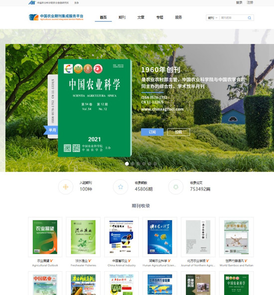 “中国农业期刊集成服务平台”于2021年12月底正式发布上线。该平台面向国家构建科研论文和科技信息高端交流平台的需求,顺应科技期刊集群化发展趋势,主要目标是实现农业科技期刊资源集成化长久保存及开放获取,协同科研工作与知识创新,为农业科技期刊及农业科研领域学术共同体提供科学传播与知识服务,不断提升农业科技期刊的影响力和话语权。