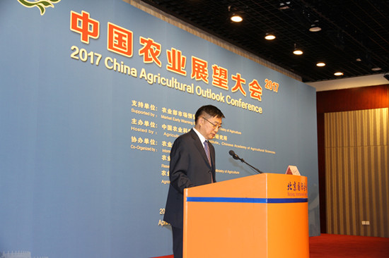 屈冬玉副部长在讲话中指出,召开农业展望大会、发布农业展望报告是农业供给侧结构性改革背景下农业管理和服务方式的重要创新。近年来在中国农科院等单位的努力下,大会质量持续提升,各方面要高度重视、倍加呵护,把展望大会办得越来越好,影响力越来越高。目前我们国家还是以小农生产为主,实现规模经营还有很长的路要走。他要求,要立足我国国情,加快培育支撑小农现代化的市场服务体系,立足帮助小农户对接大市场,打造权威信息发布平台;立足构筑小农收入安全“防护网”,建立健全农户经营风险防范机制。他强调,要依靠市场化信息化提升2亿多小农户利用信息、参与市场、融入产业的能力,把小农户培育成新农民,融得进产业链、连得上大市场。他指出,加快建设中国特色的市场信息服务体系和信息发布平台,推进中国特色小农现代化,是支撑中国农业供给侧结构性改革全局的必然选择,具有重大国际示范引领作用。