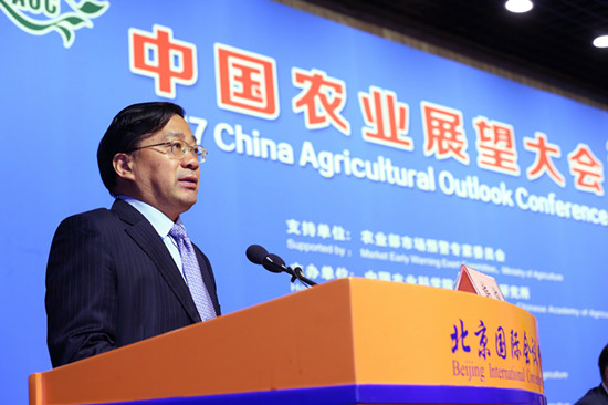 韩俊副主任在讲话中指出,《中国农业展望报告》连续4年发布,报告受到政府决策部门和产业界越来越高的重视,在政府决策中也起到了越来越重要的作用。我国农业展望工作虽然起步相对比较晚,但经过多年努力,已经形成了一支高水平的专家队伍。他强调,中国是一个农业生产和贸易大国,要加快建立健全权威、规范、持续的农业数据信息收集、分析和发布体系,加快建立全球农业数据调查分析系统。他强调,推动农业供给侧结构性改革,必须把保障国家的粮食安全作为一个基本的底线,调减玉米等供过于求的粮食品种,但绝不能损害粮食生产能力,稳定水稻、小麦生产,确保谷物基本自给、口粮绝对安全。他指出,中国已经成为最大的农产品进口国,在市场上影响很大,世界各国都非常关注,应该通过农业展望报告,更加主动的发出中国的声音。