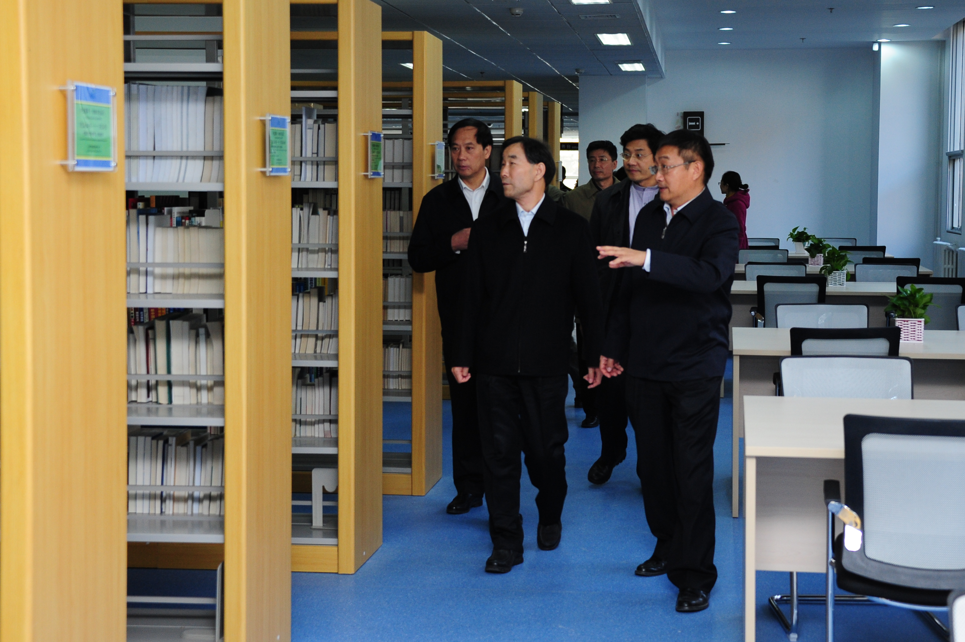 参观过程中,朱保成组长听取了国家农业图书馆各项服务功能的介绍,先后参观了古籍书库、开架阅览区、农业监测预警研究空间、农业信息分析研究区、农业信息技术研究区。参观中,朱组长询问了古籍安全保存措施、图书馆服务方式、农业监测预警研究远程监测技术、系统开发等情况,对刚刚落成就投入使用的国家农业图书馆的宏大规模、先进设备、优美环境、严格的管理、井然的秩序,不时表示赞赏。