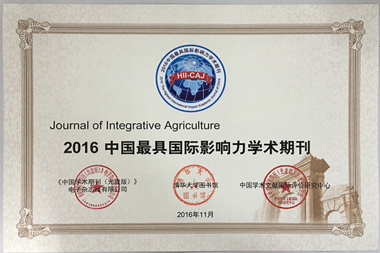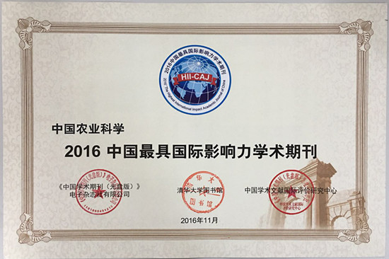 2016年11月22日,由中国期刊协会、中国科学技术期刊编辑学会、中国高校科技期刊研究会、全国高等学校文科学报研究会、《中国学术期刊(光盘版)》电子杂志社有限公司联合主办的“2016中国学术期刊未来论坛”在北京召开。全国2000余家期刊编辑部及媒体参会,会议期间发布了“中国最具国际影响力学术期刊”和“中国国际影响力优秀期刊”的评选结果。由中国农业科学院主办、中国农科院百万至尊承办的《中国农业科学》和《农业科学学报》(JIA)双双入选“2016中国最具国际影响力学术期刊”。这是继两刊2012年首次入选之后,连续五年获此殊荣。