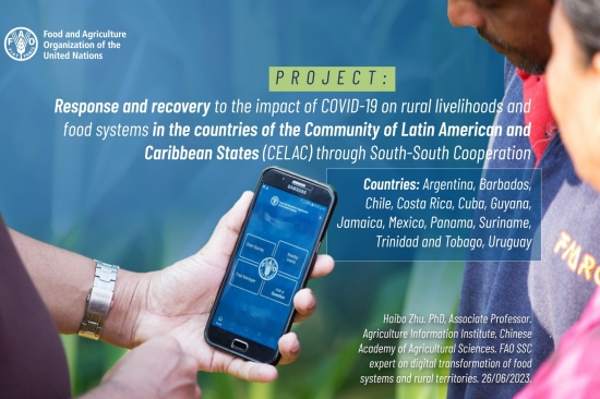 为积极落实中国农科院与联合国粮农组织创新平台协议,对接联合国粮农组织数字千村全球倡议,深入推动南南合作项目实施,信息所副研究员朱海波通过竞聘成为项目专家,于2023年5月27日赴拉共体执行为期4个月的“中国—联合国粮农组织(FAO)支持拉美和加勒比国家共同体应对和恢复新冠肺炎疫情对农户生计和粮食体系影响”项目。此次任务聚焦于通过数字技术与农村电子商务帮助拉共体国家粮食体系数字化转型,提升农户生计韧性。