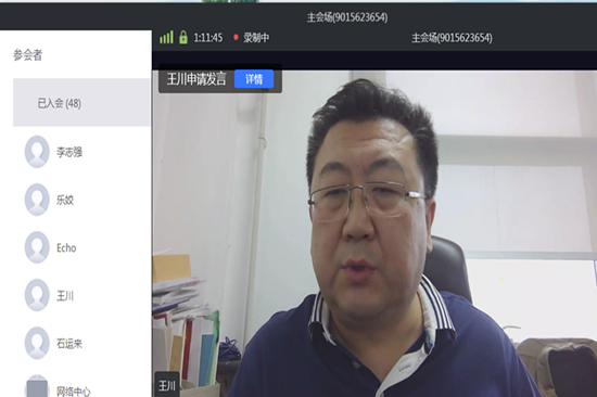最后,科技处处长王川针对近期学生工作安排进行了详细介绍。他指出虽然大家尚未回所,但是学习和科研工作不能松懈,研究生论文撰写、开题考核、中期考核等工作会照常开展。同时他还提醒大家在疫情尚未结束,大家依然要提高自我保护意识,做好防护工作。
